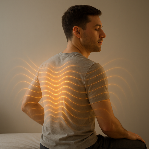 Morning reset (1 minute) – After waking, gently apply the vibration to each side of the lower back to encourage circulation before movement.